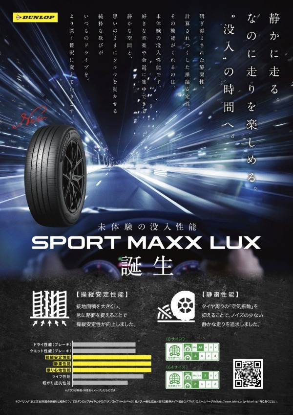 快適性に配慮して設計されたプレミアムコンフォートタイヤ「SPORT MAXX LUX」(スポーツマックスラックス)です。