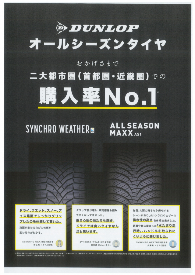 SYNCHROWEATHER発売1周年キャンペーン「第3弾」 「#シンクロウェザーで行ってきた」フォトキャンペーンやってます。 お出かけ写真を投稿して、選べるギフトをGETしよう! ↓応募方法はこちら https://tyre.dunlop.co....