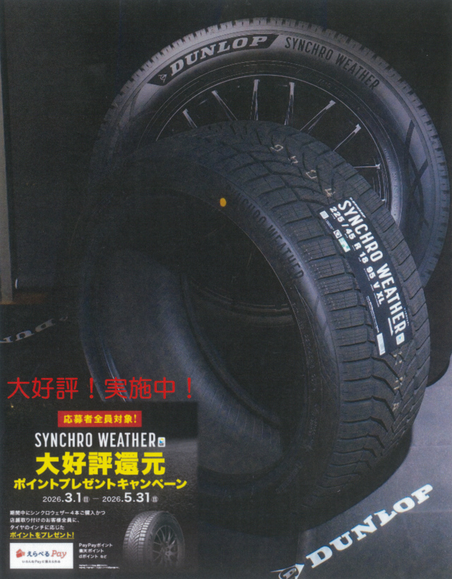 好評をいただいております、SYNCHRO WEATHERの 最大¥15,000-相当がポイント還元される 「大好評還元ポイントプレゼントキャンペーン」 残り1か月と少し!5月31日までとなります! 取付完了が5月31日ま...