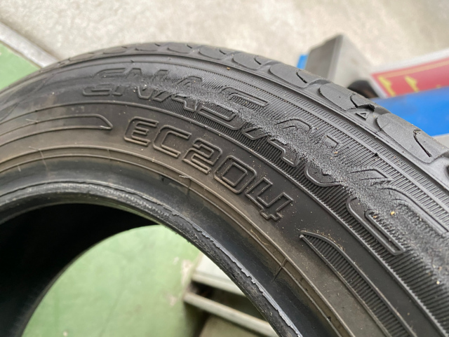 スリップサインも通り越してます。かなりの偏摩耗なので車両側が原因かもしれません。