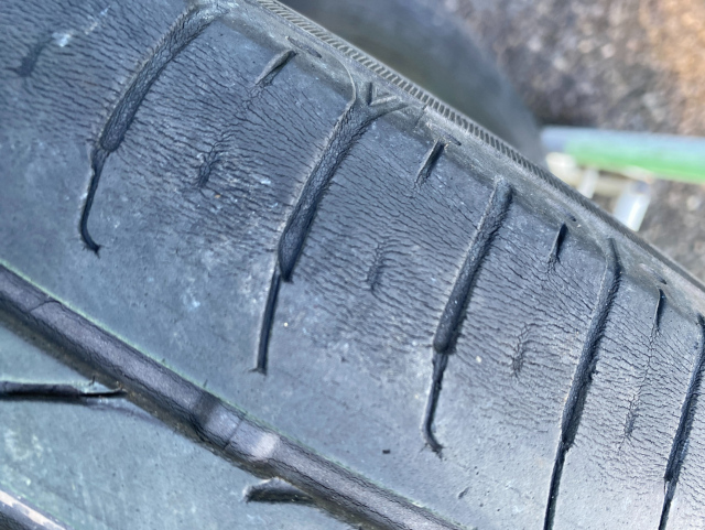 こ空気圧が不足していると、こうなりやすいですが、この状態で空気を入れても後の祭りです。