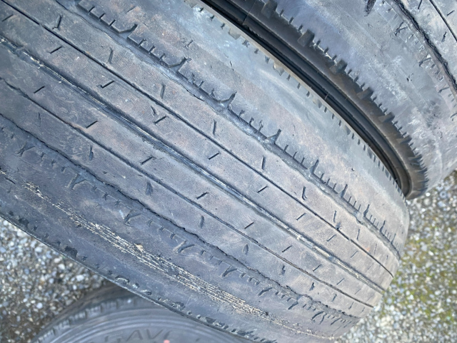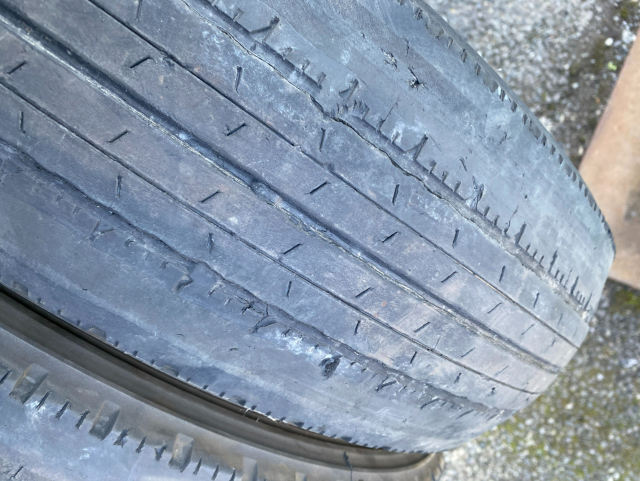 溝はまだ多少ありますが、トレッドの肩にヒビが目立ちますね。