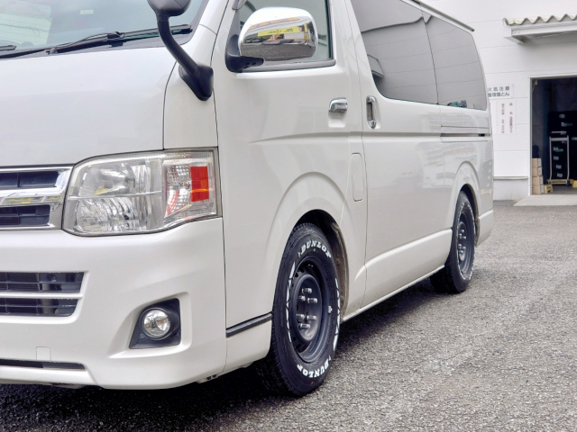 真っ白なHIACEに、ホワイトレターのスタッドレス ”W01 for WINTERを 装着いただきましたT様、本日は、ありがとうございました! アルミホイールか悩んでいらっしゃいましたが、艶消しブラックのスチー...