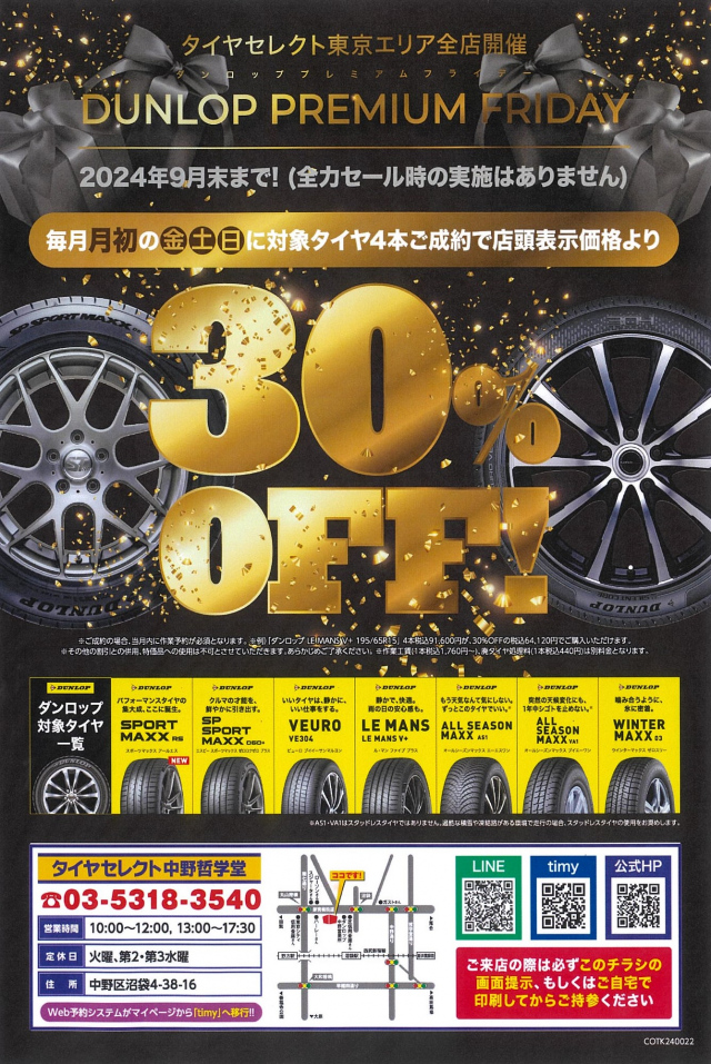 指定月月初の金・土・日曜日に対象タイヤ4本ご成約で