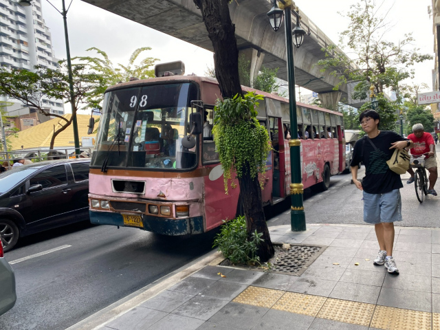 日記 【タイ・バンコク】タイの車事情 お世話になっております!タイヤセレクト中野哲学堂です! 日本でも度々話題になるタイ・バンコクの渋滞。長い場合には深夜まで渋滞が続くこともあります。 現に中の人が滞在した時も、深夜まで交通量が多かったです。 それほどの渋滞が起こるほど、タイは車社会です(プラスバイク) タイは鉄道があまり発達してないので、地方へ行くと車社会がさらに顕著になりますね。 それと車優先なので、人が横断歩道を渡っていてもガンガン車が突っ込んできます。 そしてバイク。現地の人はもっぱらバイク移動がメインだそうで、二人乗り(場合によっては3人4人で)で乗っています。 しかもノーヘルが多い(もちろん違反ですが、その辺は適当です) お父さん運転・お母さん後ろ・子供前で3ケツノーヘルもざらです。日本なら一撃で捕まるでしょうね(笑 そしてバイクタクシーなるものも存在してます。 バイクの後ろに乗って移動するのですが、渋滞だろうとなんだろうとすり抜けて行けるのが魅力ですが、いかんせん危ない。 最近は都心部のバンコクでは電車が発達してきているので、交通の便はだいぶ便利になってはきています。 ですがやはり旅行者ですとタクシーが便利ですね。 タイは交通料金が日本と比べて安いです。タクシーも初乗り35B(140円ほど)1km進むごとに7B(30円ほど)加算されます。 配車アプリも進んでいて、アプリで目的地を指定すれば近くのタクシー等がすぐ来てくれます。 しかもクレジットカードを登録しておけばわざわざ財布も出す必要もありません。 タイ気分を味わいたいなら、トゥクトゥクもあります。料金は言い値(交渉あり)になりますが、それでも500円から1000円ほど。 アトラクションとしてかなり楽しい乗り物です。ぼったくりには注意ですが(笑 もちろんバスもあります。これは現地のタイ人向けですが、そのおかげで料金はかなり安いです。 最安値は8B(35円ほど)ですがエアコン無し(暑い)。エアコン付きのEVバスだと25B(112円ほど)くらいです。大体は一律料金ですが、長い路線ですと距離に応じて運賃がかわります。 その他、前回のタイガーパーク等ほかの地域へ行くのもバスが主流のようです。 次回へ続きます! 2025.02.28