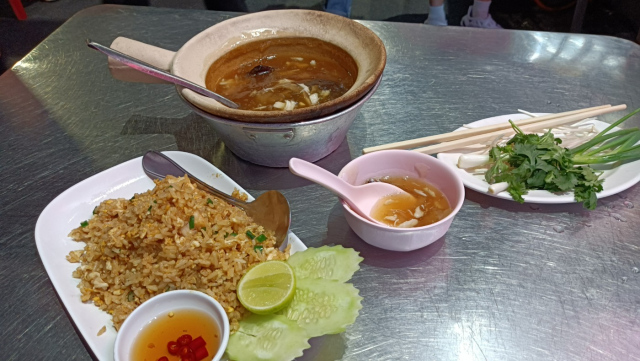 今回は一番小さいサイズ(それでも牛丼の並どんぶりくらいあります)300B(1,350円くらい)で日本でおなじみの姿煮ではないですが、中にはフカヒレがこれでもかと入っています!