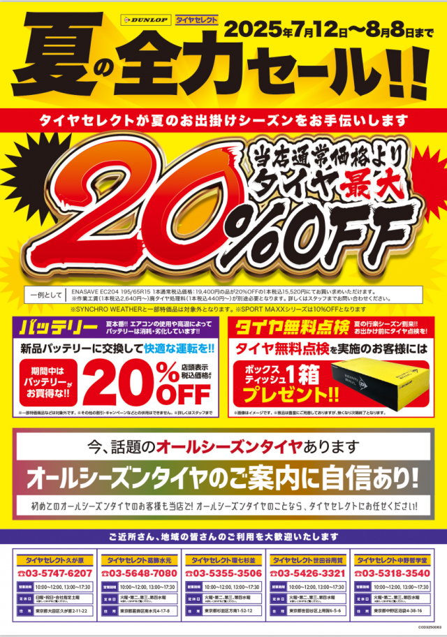 最大20%OFF!【夏の全力セール!】7月12日(土)~8月8日(金)まで!