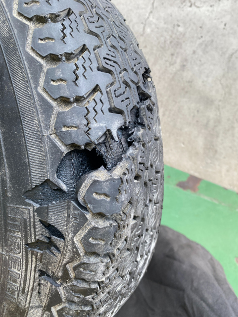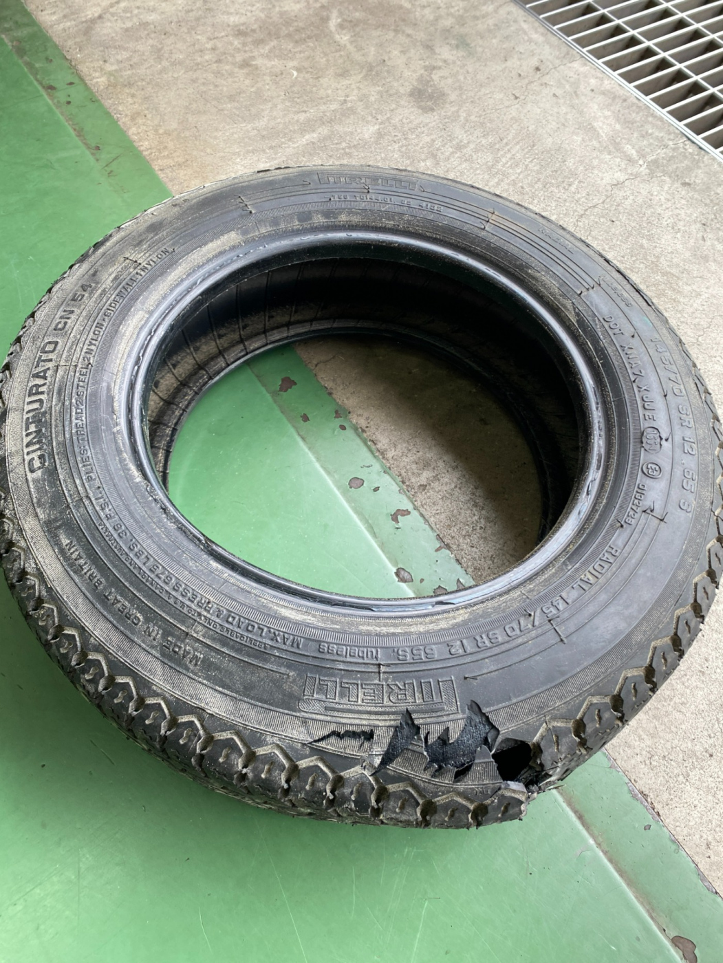 今日の危険タイヤ お世話になっております!タイヤセレクト中野哲学堂です! 今日の危険タイヤ。 セパレーションからのバーストタイヤです。 製造年を見ると、1996年製のタイヤでした。 それはこうなりますわ。 2025.10.30