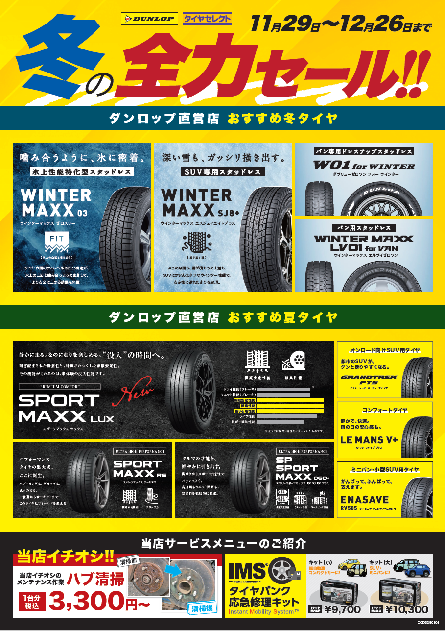 ●SPORT MAXX LUX4本セットお買い上げの方に、タイヤローテーション無料券プレゼント!