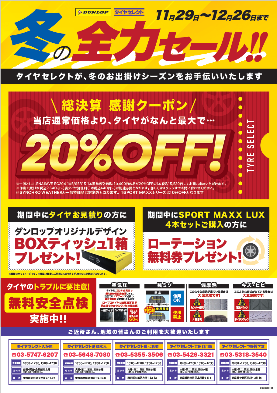 最大20%OFF!【冬の全力セール!】11月29日(土)~12月26日(金)まで!のコピー