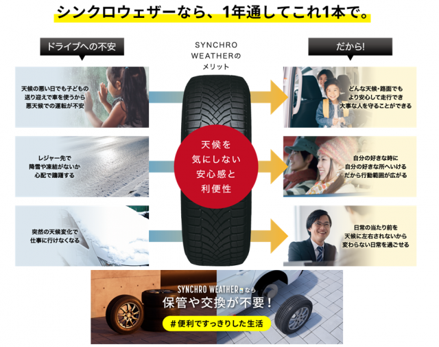 ●お世話になっております!タイヤセレクト中野哲学堂です. ダンロップの新オールシーズンタイヤ”SYNCHRO WEATHER”シンクロウェザーですが発売以来大好評です!ありがとうございます! シンクロウェザー! なにかと冬の...