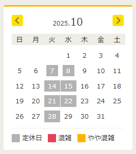 定休日混雑やや混雑