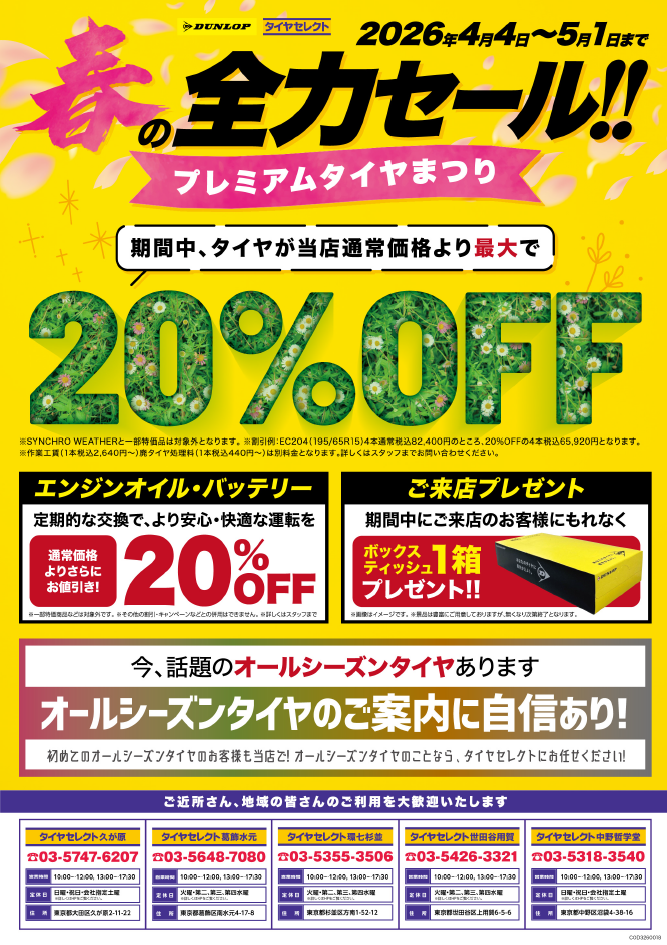 期間中、タイヤが当店通常価格より最大で【20%OFF】