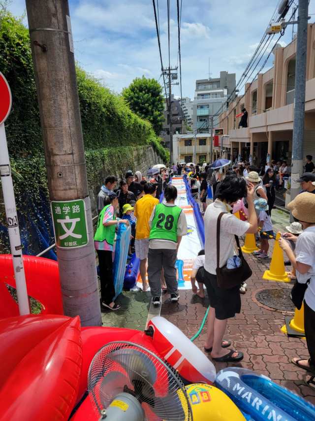 街の地形を利用してウォータースライダー!なかなかの規模で30メートルくらいありました。
