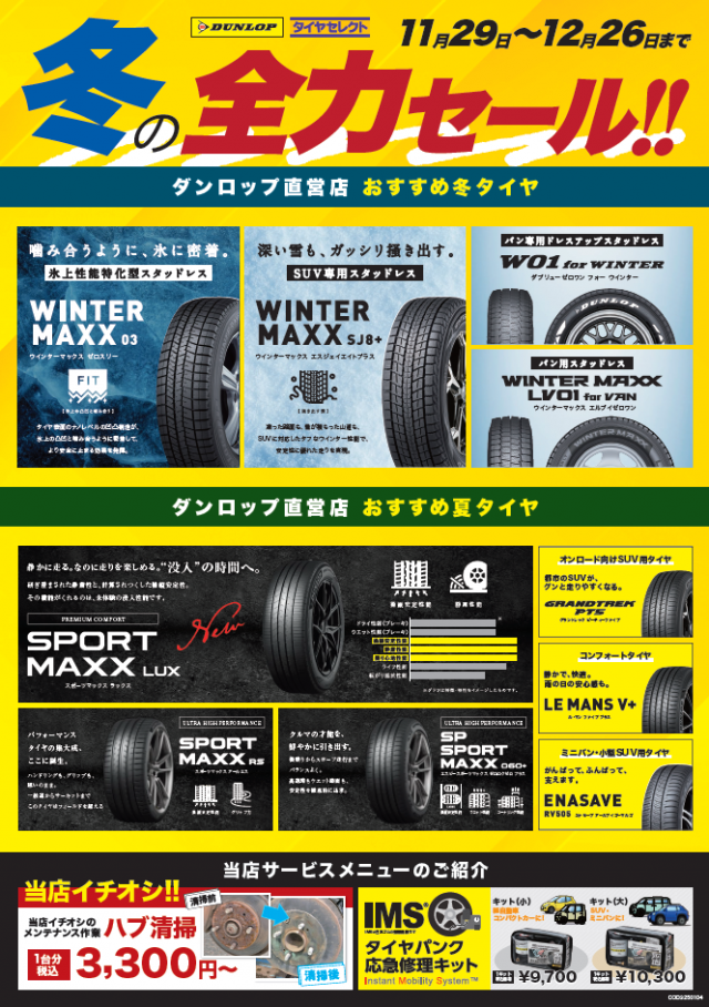 タイヤセレクトが冬のお出かけシーズンをお手伝い致します。