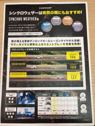 いつも当店をご利用いただいているお客様の新車【ヤリスクロス】にシンクロウェザ-をお買い上げいただきました。 これでドライ路面はもちろん、雨でも雪でも安心してドライブ出来ますね! お買い上げありがとうござい...