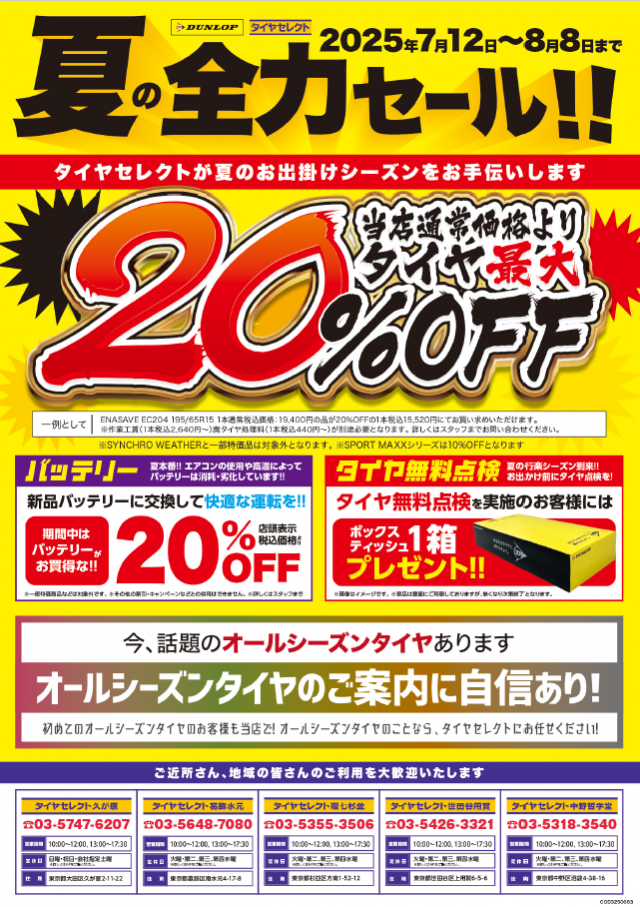 大好評全力セールも残り約1週間となりました!! 夏休みのロングドライブ前にお得にタイヤを購入する大チャンス!!! まだ間に合います! まずは点検から、お気軽にご来店下さい!!