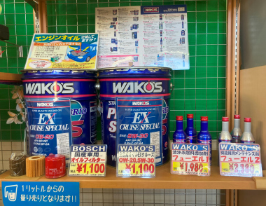 エンジンオイル(ワコーズEXクルーズ 粘度2種類)とワコーズ燃料添加剤のフェーエル1・フェーエル2とバッテリー・ワイパーの在庫御座います。