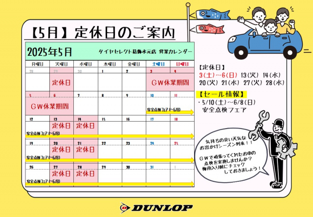 いつもお世話になっております。タイヤセレクト葛飾水元店です。 年末は12月26日(金)までの営業となります。 12月27日(土)~ 2026年1月4日(日)は 休業日 年始は1月5日(月)からの通常営業となりま...