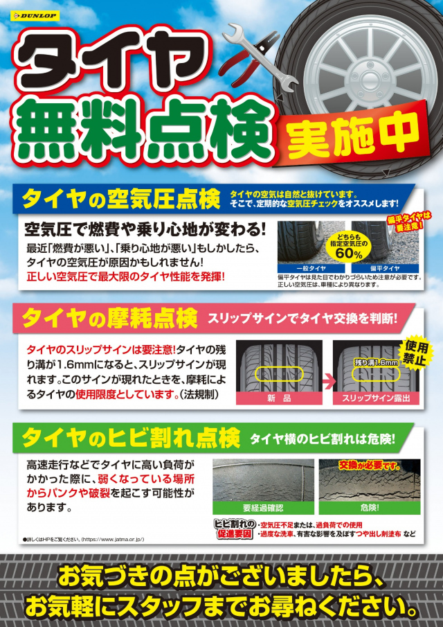 タイヤのプロが細かく点検いたします!※オイル・バッテリーも点検可能