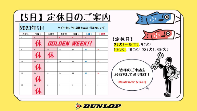 5月に入るとあっという間にGW、当店も5/2(火)~6(土)までお休みとなります。