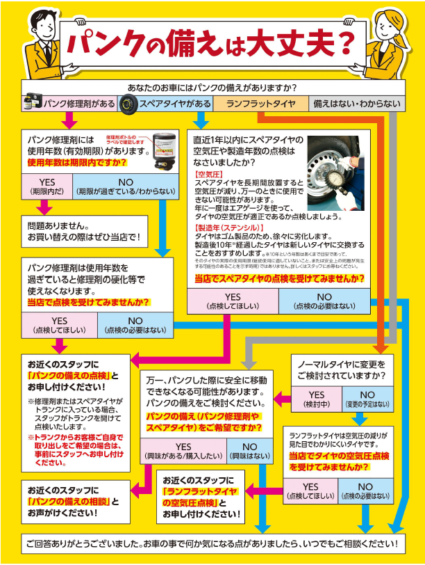 楽しいお出かけをご安全に過ごす為にも、車・タイヤのチェックをしておきましょう!