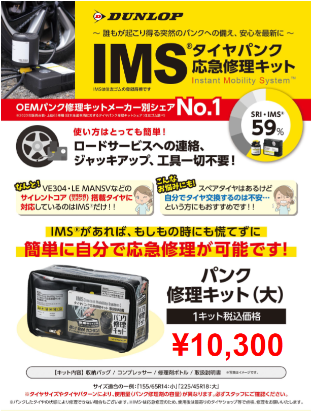 そんな時にはIMS(パンク応急修理キット)がオススメ♪