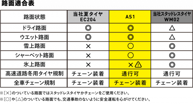 オールシーズンタイヤはスタッドレスタイヤではありません!