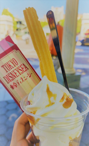 第一次おやつタイム、みたらしチュロスのサンデー!甘しょっぱくてうま~!