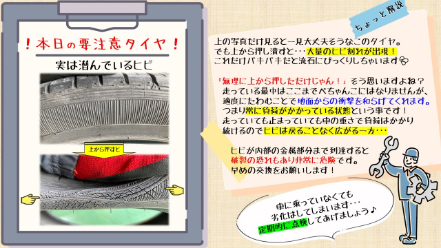 今回の症状はタイヤ側面 サイドのひび割れ!!