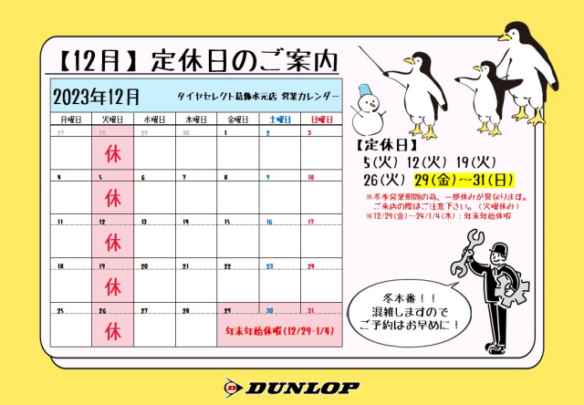 年内に履き替えをご希望の方は12/17(日)までにご連絡ください。