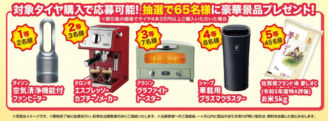 ☆対象タイヤご購入(4本ご購入かつ割引き後のタイヤ金額が税込\30,000以上の方)で抽選にて豪華賞品をGETしましょう♪ !(^^)!