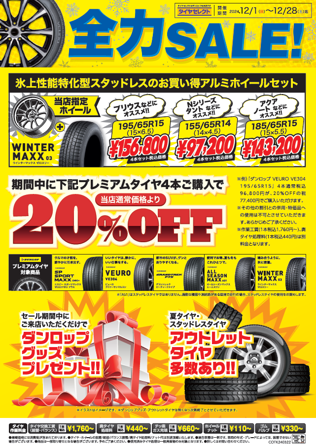 目玉①:期間中プレミアムタイヤ4本ご購入で『20%OFF』!