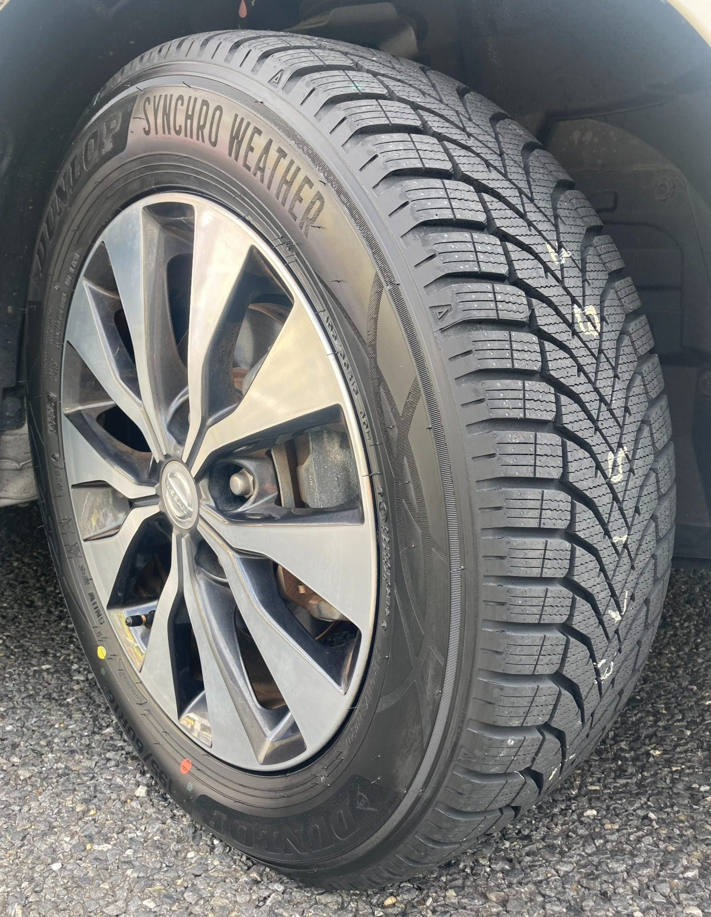 O様は夏タイヤの摩耗で新規御来店。シンクロウェザーの夏・冬性能をお話しし、通勤にも使用するので1年中タイヤを履きっぱなしで突然の雪にも対応出来る点に興味を持って頂きチョイスしました。