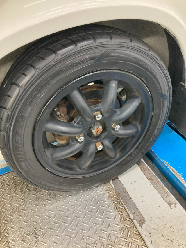 今回ご紹介させていただきますお車は【通称マー坊】で親しまれたかつての鈴木自動車工業が生産販売していたボンネット型軽トラック【マイティボーイ】のタイヤ交換をさせていただきました!