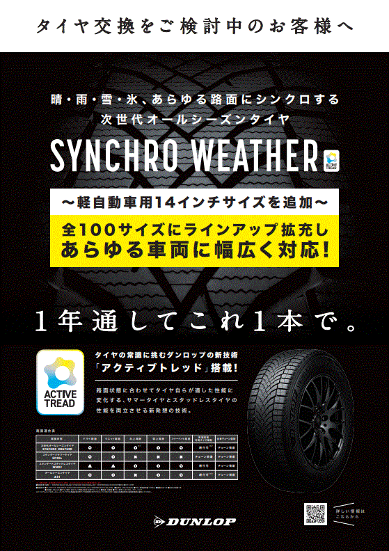 【シンクロウェザー】タイヤサイズ追加(全100サイズラインナップ)