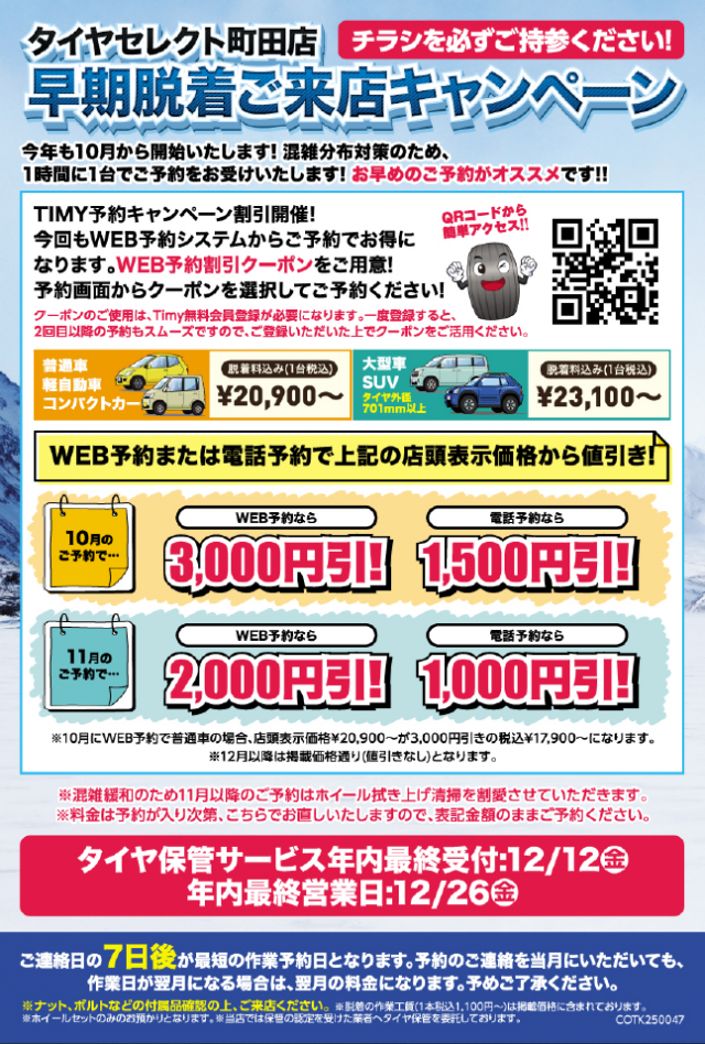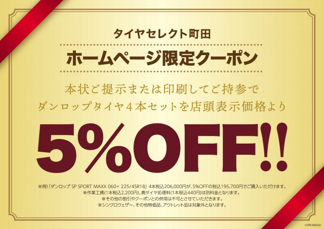 タイヤセレクト町田です! ホームページ限定クーポンをご用意致しました☆ 今月のキャンペーンは、ホームページ限定クーポンまたはLINEクーポン併用可能となりますので、 ぜひ、ご提示または発行の上、ご利用ください☆ ...