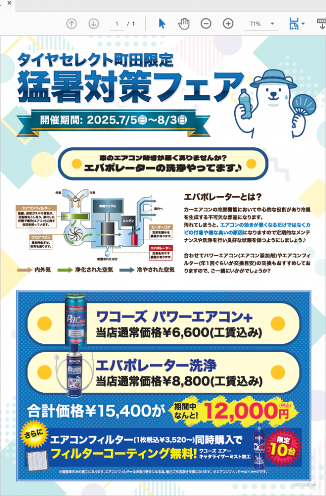 今月はひんや~り対策、町田店限定のキャンペーン開催! ワコーズ商品でお車の快適さにプラスいかがですか? エバポレーター洗浄が出来ます!※所要時間1時間ほど。 エアコンの効きをもっとよくしませんか? 8月3日...