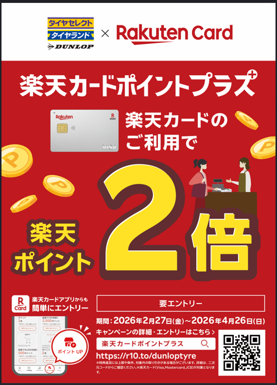 エントリーをされた方は上記期間中、楽天ポイントが2倍となります。