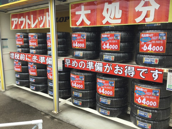 タイヤは単価もそこそこしますので、増税前に購入がお得です。