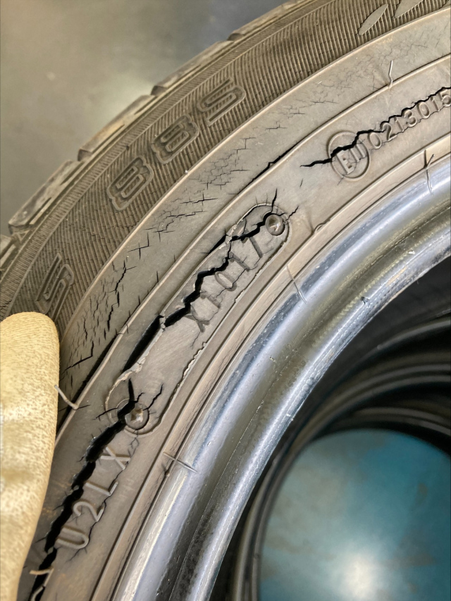 先日交換されたお客様のタイヤをよく見ると、ひび割れが!!