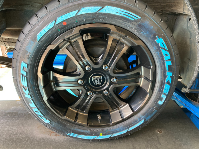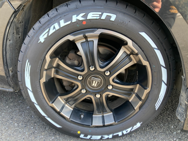 FALKEN W11というタイヤで高荷重に対応した規格の本格仕様に加え、ファッション性の高いホワイトレターを採用し、ドレスアップしたワンボックスカーにひときわの個性を与えます!!新品時は保護剤が付いていて青い文字ですが、水に濡らすとホワイトレターになります。FALKENのロゴがキマっていてカッコイイです!