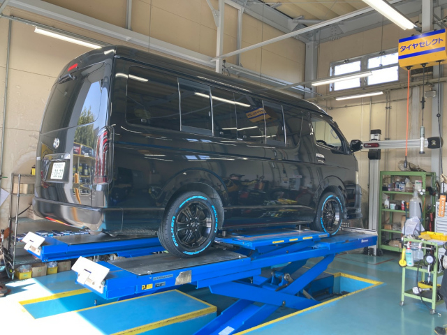 先日、ハイエースで御来店のお客様にドレスアップ バン用タイヤを装着しました!!
