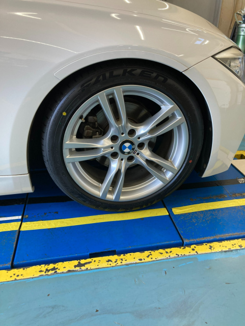 本日はBMW3シリーズのご来店です。 装着タイヤは225/45R18 255/40R18の