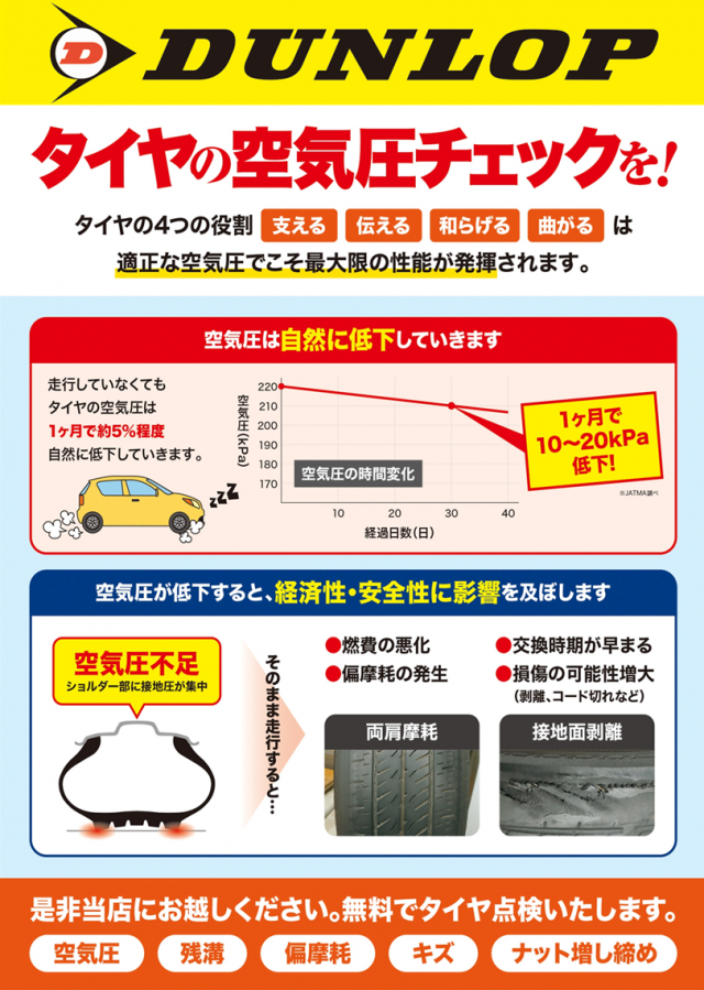 お出掛け前に、ぜひタイヤ点検を!