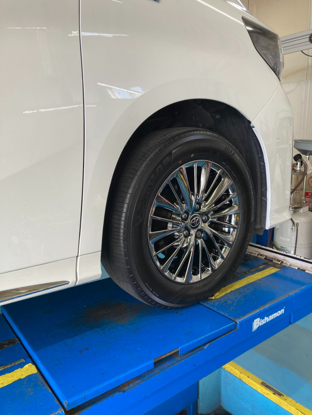 パンク修理でのご来店でそのままタイヤの商談で、スポーツマックスLUXをお選びいただきました。 高級ミニバンにはプレミアムタイヤが似合いますね!!