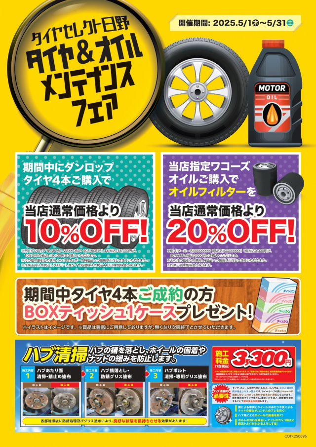 ゴールデンウィークの後の愛車のメンテナンスに是非ご検討ください。