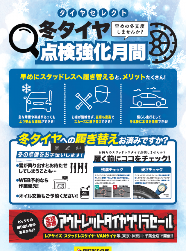 タイヤセレクト日野店のHPをご覧いただき ありがとうございます(^^) 最近、肌寒い気候になってきましたね~ ということは! スタッドレスタイヤに 履き替えの季節ですね! 当店では”timy”での ネ...