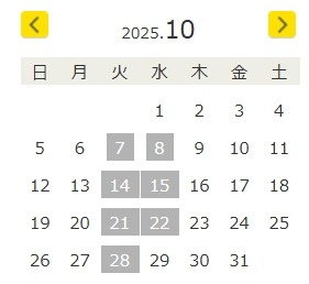 10月の定休日のお知らせです。 7日、14日、21日、28日の火曜日 8日、15日、22日の水曜日 こちらが当店の定休日となりますのでよろしくお願い致します。