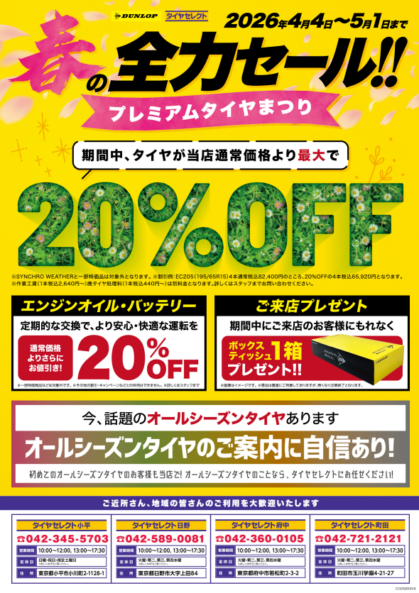 対象のタイヤが最大で20%OFF!